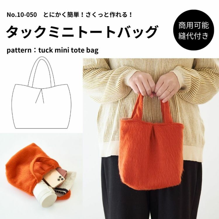 とにかく簡単!さくっと作れる! 【縫い代付き】10-050 タックミニトートバッグ 型紙 【商用可能】