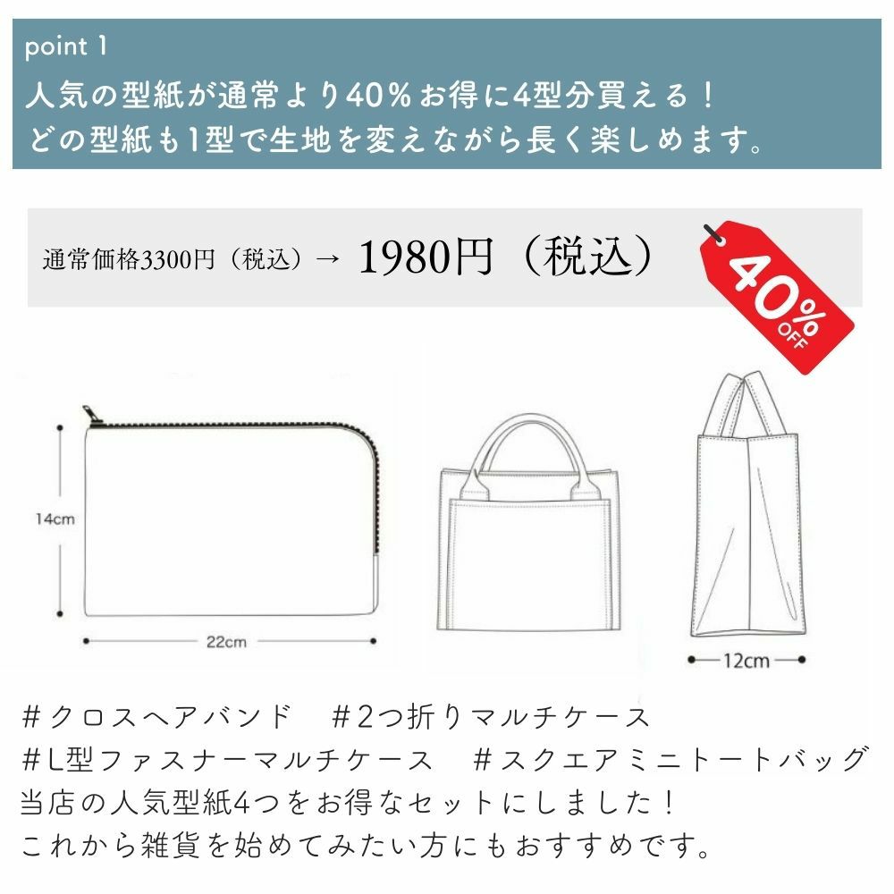 他の画像を見る なが~く、楽しめる5型分! なが~く、楽しめる5型分! オリジナル雑貨型紙 お得な詰め合わせ 5枚セット 10-003フリルミニトート 10-024バックル持ち手ランチバッグ 10-019ロールペンケース 10-029テントポーチ 10-020お散歩サコッシュ ¥ 1,980 税込 (0) お気に入りに登録する