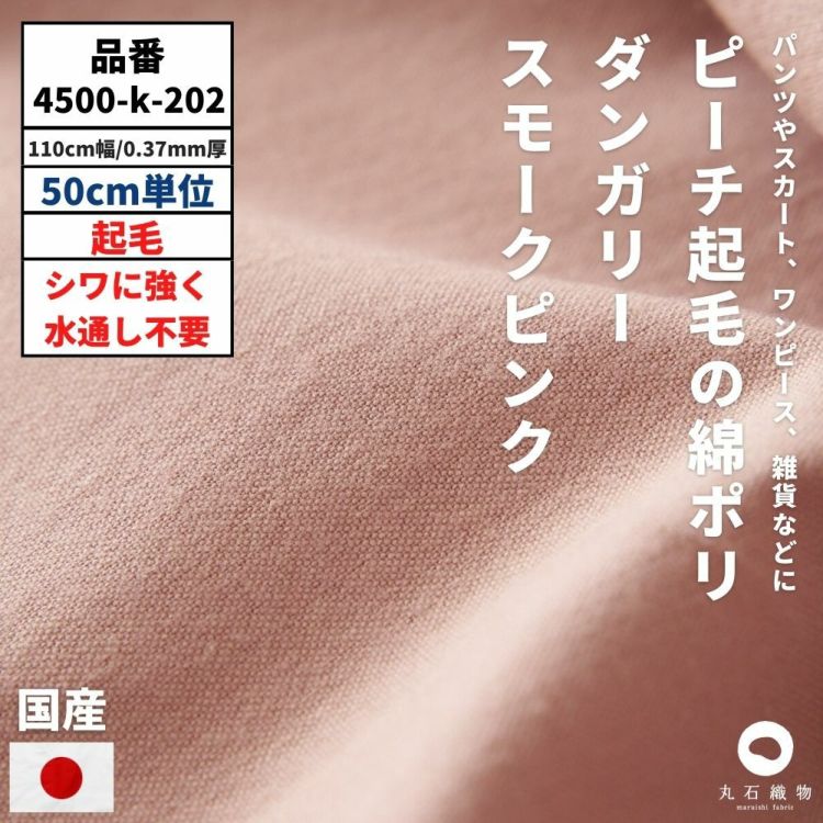 生地 布 無地 ピーチ起毛の綿ポリ ダンガリー スモークピンク 50cm単位 110cm幅 0.37mm厚【商用可能】