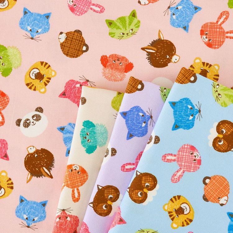 雑貨や入学・入園グッズなどに コットンオックス 森のどうぶつ 動物 プリント 110cm幅 50cm単位 【商用可能】